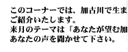 ●私にとって「加古川」は切っても切れない生活に密着した存在でした。昔はよく川で遊んだものでしたが、楽しい思い出と同時に、「あばれ川」とも言われた加古川の洪水や自然災害の恐怖もよく覚えています。