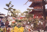 そして、人々の祈りが仏の知恵の火で煩悩を焼き尽くす事を願いながらクライマックスを迎えます。炎の残る大護摩の上を人々が渡り、一年間の無病息災を祈られます。その炭木を持ち帰って厄除けに軒先へ祀る人もいるといいます。この太子会式の3日間は、境内では植木市や露天が並び、多くの参拝者で賑わいます。聖徳太子の偉業は今も人々に認知されており、その信念を慕い参拝者の心に深く浸透しています。