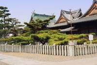 祭神は住吉大明神(海の神様)です。境内には有名な謡曲「高砂」に謡われた相生霊松「尾上の松」があり、現在の松は五代目で、樹齢約100年と言われています。また代表的な朝鮮鐘で、重要文化財にも指定されている「尾上の鐘」も有名です。その昔、海賊に盗まれて海に沈められた後、漁師の手によって引き上げられ、高野山に奉納されましたが、鐘の音が「おのえへ、いのー。」と聞こえたことから、尾上神社に戻されたという伝説があります。 |