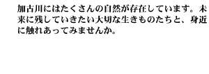 1.ユリカモメとカルガモ 2.ヨシ原の中にいるダイサギ 3.アオサギ 4.オオヨシキリ 5.セイタカヨシ(花期8〜11月) 6.オギ(花期9〜11月) 7.堤防のツクシ 8.潮留 9.クサガメ