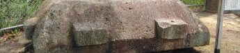 | 平荘湖は昭和41年に完成した周囲約5kmの県営工業用水ダムです。その湖底には数多くの古墳が沈んでおり、湖畔にある弁財天神社の境内には長さ223cm、幅148cm、厚さ60cmもある竜山石製の家型石棺の蓋が安置されています。これは平荘湖地内16号墳(稚児窟古墳)の石棺の蓋で、弁財天神社の境内に掘り出されていたものを、平荘湖建設にともなう弁財天神社の移転にあわせて現在の場所に運ばれました。「印南郡誌」によると姫路城主であった榊原式部太輔は鷹狩りでこの地を訪れた際、この石棺を見てよい泉水(庭の池)だと懇望され、多くの人夫が志方町の投松峠まで大八車で運んでいったが、あまりの重さで車が動かなくなり途中で捨ててしまったとの記録があり、近年の調査の結果この蓋と石棺がぴたりと一致したため一対のものであることが確認されています。 |